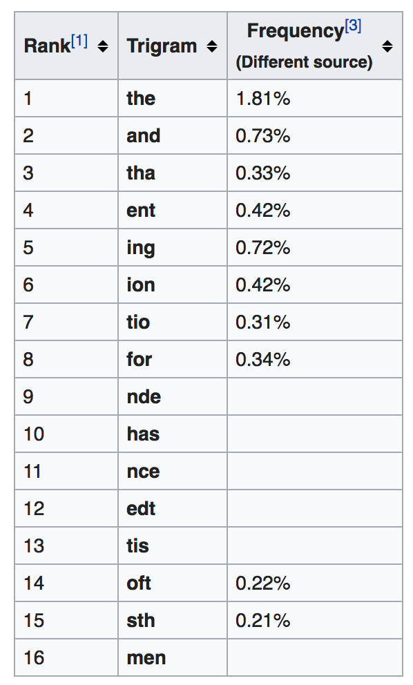 Now I’m guessing you’re starting to see the pattern here. Next Shannon looked at trigrams, sets of three letters.