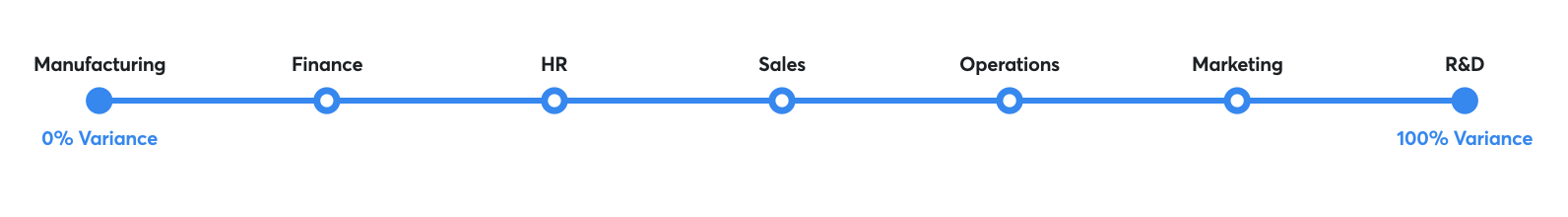 While the poles of the spectrum help explain it, it's what you place in the middle that makes it powerful. For example, we could plot the rest of the departments in a company by the average variance of their output (finance is particularly low since so much of the department's output is "governed" -- quite literally the government sets GAAP accounting standards and mandates specific tax forms). Sales is somewhere in the middle: A pretty good mix of process and methodology plus the "art of the deal". Marketing, meanwhile, sits off to the right, just behind R&D.
